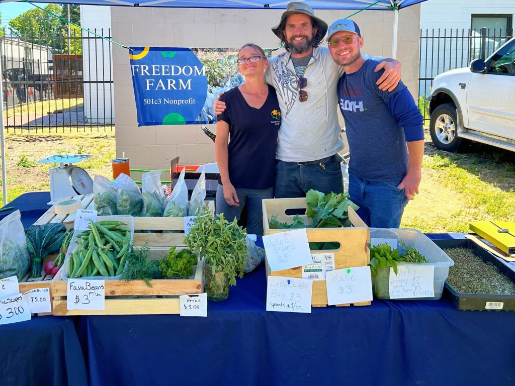 Freedom Farms is a trauma informed 501 c3 prison reentry organization with farm sites in Gold Hill and Ashland. We utilize the therapeutic experience of gardening and land conservation management to heal and help transition individuals back into the community after the debilitating experience of incarceration. Program participants are given workforce training and development opportunities with wrap around support services and social integration at our weekly farmers markets. At the farmers markets participants get to showcase the produce they grew on the farm, learn the soft skills of sales and marketing and engage positively with the community while reducing stigmas and stereotypes.