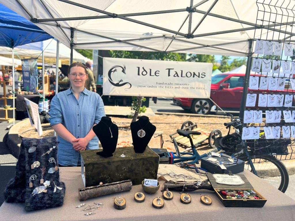 Larkin creates jewelry and sculpture from metal and stone.