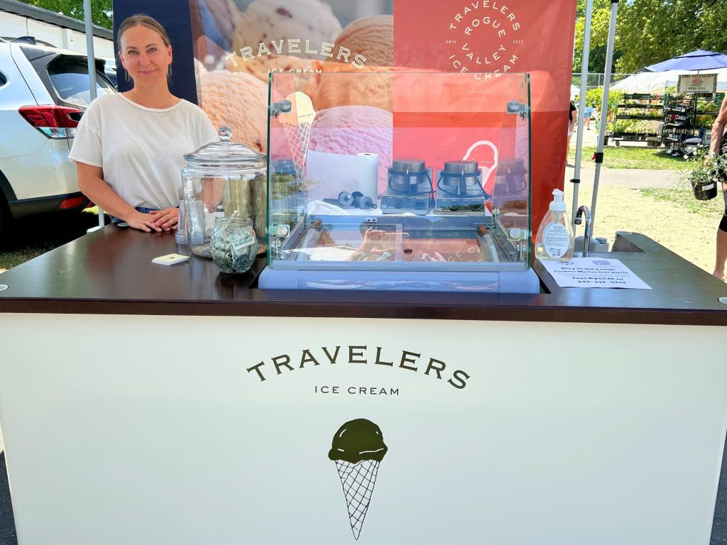 Travelers Ice Cream is providing the Rogue Valley with some of the most delicious hand-crafted gourmet ice cream! We create interesting flavors from scratch using local and seasonal ingredients when possible. We offer Dairy-free and Gluten Free options as well, including our delicious handmade gluten free waffle cones.